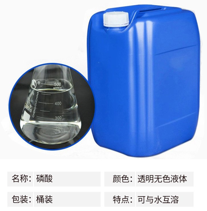 金屬表面鋼管磷化處理,配制電解拋光液和化學(xué)拋光液;鋁制品的拋光;制造各種磷酸鹽、飼料級(jí)磷酸氫鈣、酸式磷酸錳、焦磷酸鉀;醫(yī)藥工業(yè)用于制造甘油磷酸鈉、磷酸鐵,制造青霉素時(shí)調(diào)節(jié)酸堿度;用于制造磷酸鋅作為牙科補(bǔ)牙時(shí)粘合劑;塑料用于酚醛樹脂縮合的催化劑Chemicalbook;染料及中間體生產(chǎn)用的干燥劑;印刷用于配制揩去膠印彩印版上污點(diǎn)的清洗劑;火柴用于浸漬火柴梗,能使燃燒過的火柴梗不成灰而成炭狀,使用時(shí)較為安全;冶金用于生產(chǎn)耐火泥,提高煉鋼爐壽命;橡膠用于漿料的凝固劑及生產(chǎn)無機(jī)粘結(jié)劑的原料;涂料用于金屬防銹漆;食品工業(yè)用作酸性調(diào)味劑。